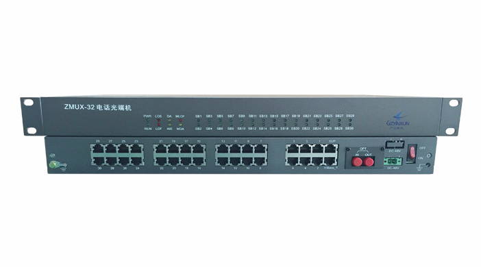 ZMUX-32是一款電話光端機,主要完成電話、4線音頻(E&M)、RS232、網絡等多業務接入,通過復用到1路光信號傳輸,實現多業務信號點對點通信功能。